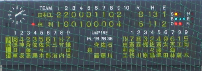 中央地区大会、5月2日第2試合(八橋球場)は由利工と由利の本荘市内校同士の対戦。試合は由利工が常にリードし8-2で迎えた9回裏の由利の攻撃、一死走者なしの場面で由利工サイドは救援投手にスイッチ。これが思わぬ誤算を生みあわや二死満塁一打逆転サヨナラ負けの大ピンチに(投手の交代は難しい)。試合時間2時間44分以上に長く感じられた試合でした。