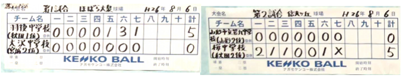 8/7 準々決勝 羽後2-6平二、桜5-3久慈、8/6 1回戦 羽後5-0大沢、桜5-0山形九